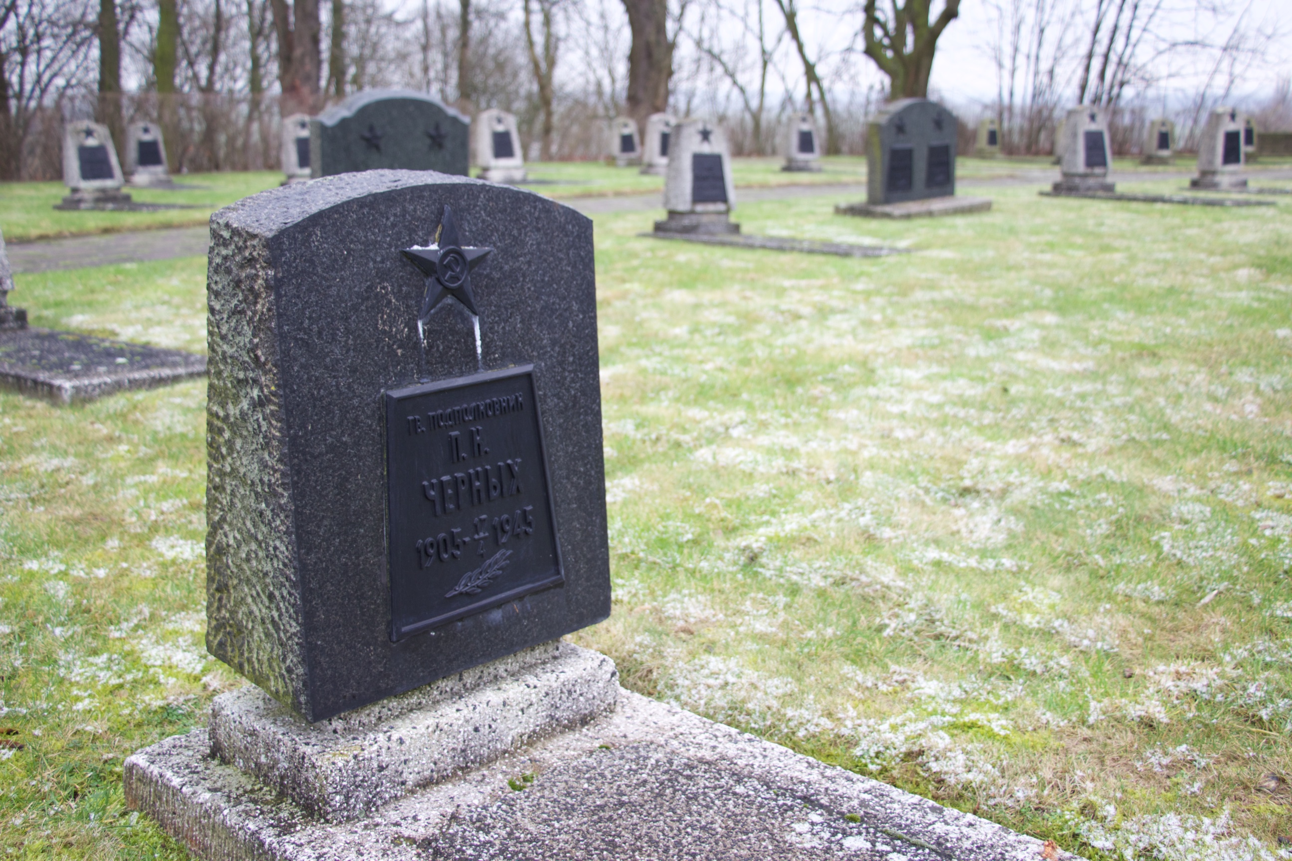 The monument at Seelow was created by Lev Kerbel, who also designed the Tiergarten memorial. The Red Army didn’t waste time: both monuments were inaugurated in November 1945. The Seelow statue shows a Red Army soldier with his hand on the turret of a defeated German tank. From the beginning, the memorial included war graves, but most Soviet and German casualties of the battle are buried elsewhere, at Lebus and Lietzen cemeteries respectively.